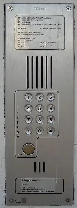 Für den Hausgebrauch wurden jedoch schon früher Sprechanlagen entwickelt: Dem Dresdner Journal im Königlich Sächsischen Staatsanzeiger ist zu entnehmen, bereits 1890 wurde in der Arbeitsanstalt von Dresden der Unterhalt einer Klingel- und Sprechanlage genehmigt.[1]