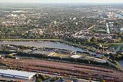 Tiefliegende Gebiete nahe dem Spreehafen waren besonders heftig von der Sturmflut 1962 getroffen, weil dort viele Menschen in Behelfsunterkünften lebten und nicht rechtzeitig fliehen konnten, als die Deiche brachen.[2]