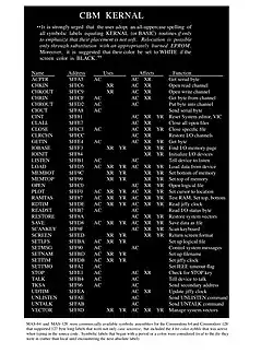 - Das Betriebssystem des Commodore-PET 2001 und seiner Nachfolger bis hin zum C64 hatte am Ende seines ROMs so eine Sprungtabelle für die wichtigsten Betriebssystemaufrufe. Beispielsweise stand in allen genannten Betriebssystemen auf Adresse