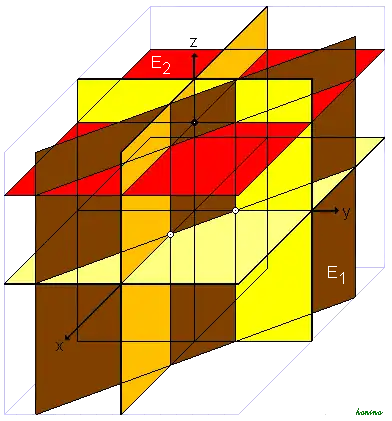 Bei speziellen Lagen der Ebene kann sich die Zahl der Spurpunkte auf zwei oder einen reduzieren und die Zahl der Spurgeraden auf zwei. Solche Ebenen sind parallel zu einer oder zwei Koordinatenachsen: