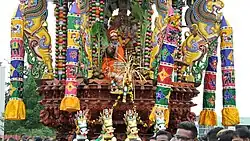 Das jährliche, 14 Tage dauernde Tempelfest, bei dem im Rahmen einer Prozession die Statue der Göttin Kamadchi auf einem buntgeschmückten Wagen den Tempel umrundet und zugleich die Stadt und die in ihr lebenden Menschen segnet, besuchen über 15.000 Gläubige und Besucher. Sie soll dabei ihre neue Umgebung gezeigt bekommen und den Menschen bekannt gemacht werden. Daneben besteht der Zweck auch darin, die Fehler und Vergehen des vergangenen Jahres auszugleichen.[13] Während der ganzen Prozession ist der gegenseitige Tausch von Blicken (Darshana) von größter Bedeutung.