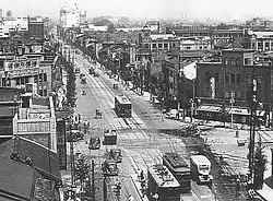 Unabhängig davon begann die Stadt selbst ab 1912 mit dem Aufbau eines normalspurigen Straßenbahnnetzes. Ausgehend vom Hauptbahnhof wurde zunächst ein Innenring über Shichijōdōri–Ōmiyadōri–Kōindōri–Senbondōri–Imadegawadōri–Kawaramachidōri mit zentral kreuzenden Achsen durch die Karasumadōri in Nord-Süd- und die Shijō- und Marutamachidōri in Ost-West-Richtung in Angriff genommen. Das Schmalspurnetz wurde mitsamt den 136 vorhandenen Fahrzeugen 1918 von der Stadt gekauft und daraufhin bis 1927 teilweise umgespurt, teilweise eingestellt; einzig eine Linie vom Hauptbahnhof nach Kitano blieb noch bis 1961 unter der Bezeichnung N-den (N電) in Betrieb.
