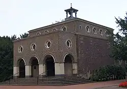 Die Trauerhalle wurde 1936 am nach Nordwesten verlegten Eingang errichtet. Der Bau ist ein durch Okuli und Tuffgesimse gegliederter Backsteinkubus. Der zweigeschossige Vorbau ist in Rundbögen geöffnet. Rückseitig schließt der Verwaltungstrakt an. Südlich der denkmalgeschützten Trauerhalle wurde 2021 ein Trauerhallenneubau mit 84 Sitzplätzen nach den Entwürfen von ch-quadrat Architekten, Dortmund, errichtet.