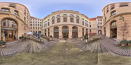Kugelpanorama des Innenhofes von der Mitte der Treppe aus (2024)