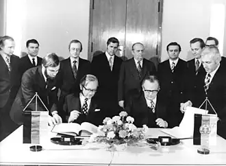 - Gaus und der stellvertretende DDR-Außenminister Kurt Nier unterzeichneten am 14. März 1974 in Bonn das Protokoll über die Einrichtung der Ständigen Vertretung (gemäß Grundlagenvertrag).