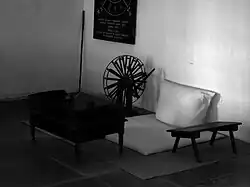 Alle Mitglieder des Aschram beschlossen, auf fabrikgefertigte Kleidung völlig zu verzichten und die benötigte Kleidung selbst herzustellen. Dazu wurden eine Reihe von Handwebstühlen beschafft. Da aber kein Mitglied der Gruppe Erfahrungen mit Handarbeit hatte, bestand die Lösung zunächst darin, lokale Weber mit der Anfertigung der nötigen Stoffe zu beauftragen. Ungern waren diese dazu bereit, das relativ grobe Garn aus indischen Spinnereien zu verarbeiten. Durch diese Bemühungen des Aschram kam aber eine Aufwertung indischer Produkte in Gang, wie Gandhi sie erhofft hatte.[6] Allmählich wurden auch Spinner und Weber ausfindig gemacht, die ihr Fachwissen weitergaben. So konnten die Aschram-Mitglieder schließlich ihre Kleidung selbst anfertigen und erzielten darin eine zunehmend bessere Qualität.
