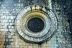 Die Fenster im Schiff und in den Giebeln der Querhausarme haben halbkreisförmige Bögen. Sie werden von rechtwinkligen Rückversätzen im Mauerwerk eingerahmt, in denen Begleiter aus Rundstäben angeordnet sind. Auf dem Giebel des nördlichen Querhausarm besitzt das Fenster einen Rundbogen der von mozarabischen Stilelementen mit kleinen Blendarkaden aus Hufeisenbögen geschmückt ist, vermutlich ein „Import“ aus Spanien. Der Chor ist mit kleineren Rundbogenfenstern ausgestattet, mit einfachen Rückversätzen des Mauerwerks. Die Giebelwand des Chors hat oberhalb der drei Rundbogenfenster ein zusätzliches kreisförmiges Fenster, ein so genanntes Ochsenauge.