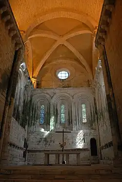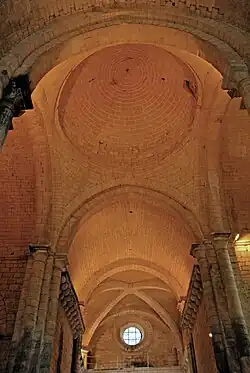 Das Schiff, die Querhausarme und der erste Teil des Chores sind mit angespitzten Tonnengewölben in gleicher Höhe überdeckt. Die Vierung ist mit einer halbkugelförmigen Kuppel auf vier Pendentifs (Hängezwickel) überwölbt. Das östliche Quadrat des Chores wird mit einem Kreuzrippengewölbe überdeckt, dessen breite, eher plump wirkende Rippen und der aus sieben Stücken bestehende Schlussstein so gar nicht an die Gotik denken lassen. Die Querhauskapellen haben zusammengesetzte Überwölbungen aus angespitzten Tonnen und Kreuzgratgewölben.