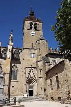 Aus der ersten, der frühgotischen Bauphase stammt der Chor mit seinen schlichten, abgetreppten Strebepfeilern und seinen kleinen Fenstern. Das Langhaus mit seinem von Fialen und Wasserspeiern besetzten Strebewerk und den großen Maßwerkfenstern gehört der Hochgotik an, während die Westfassade den Flamboyantstil der späten Gotik aufweist.