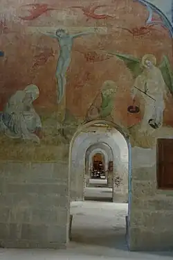 In zwei Kapellen des nördlichen Seitenschiffes sind Wandmalereien aus dem 15. Jahrhundert erhalten. In der dem Eremiten Paulus von Theben geweihten Kapelle ist die Kreuzigung Christi dargestellt und gegenüber der heilige Christophorus, der das Jesuskind trägt. Eine andere Szene zeigt den heiligen Antonius, der mit der Hilfe von zwei Löwen den Eremiten Paulus bestattet. In der den Aposteln Petrus und Paulus geweihten Kapelle wurden bei der Restaurierung Wandmalereien mit Szenen aus dem Leben der beiden Apostel und des heiligen Antonius wieder freigelegt.
