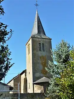 Der Chorturm mit anschließender Halbkreisapsis stammt aus dem 13. Jahrhundert. Die Apsis selber ist von Strebepfeilern umgeben. Der Turm wurde im Rahmen des Neubaus des Kirchenschiffes im 19. Jahrhundert erhöht. Im Westen erhielt die Kirche eine repräsentative neuromanische Fassade mit Rosettenfenster und einem Portal mit Tympanon.