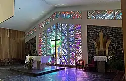 Die heutige Kirche entstand in den 1970er Jahren[3], wohl 1975,[4] andere Angaben nennen die 1960er Jahre.[5] Das Kirchenschiff ist breit gelagert und von einem Satteldach bedeckt. Guy Lefèvre wählte in Zusammenarbeit mit dem Architekten die Pflasterung aus, schuf das liturgische Mobiliar und auch das Kruzifix. Von ihm stammt auch die Darstellung der Jungfrau mit dem Kinde sowie die markanten, die Gestaltung des Innenraums prägenden Buntglasfenster mit abstrakten Motiven.[6]