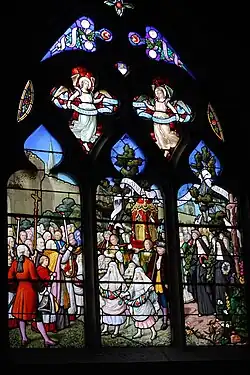 Bleiglasfenster mit Darstellung der Überführung der heiligen Colette nach Poligny