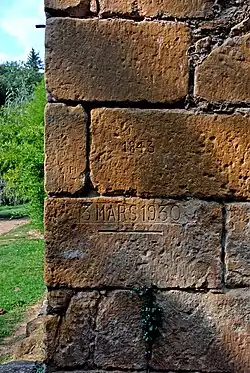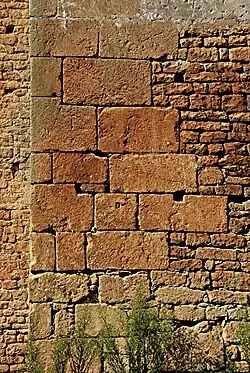 Das Steinmaterial des ganzen Bauwerks stammt vermutlich aus demselben Steinbruch. Die Farben der Buntsandsteine sind überwiegend hellorange, nuancieren aber auch nach beige und bräunlich.