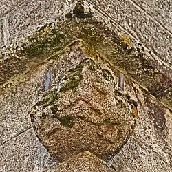 In dem nach Südwesten weisenden Wandabschnitt ist die Wand außen etwa bis in Höhe des Materialwechsels des Mauerwerks mit einer zusätzlichen Mauerschicht aufgedickt und oberseitig in zwei verschiedenen Höhen abgeschrägt. Darin ist eine rundbogige Blendarkade eingelassen, die das rechteckige einflügelige Portal der Kapelle umschließt.