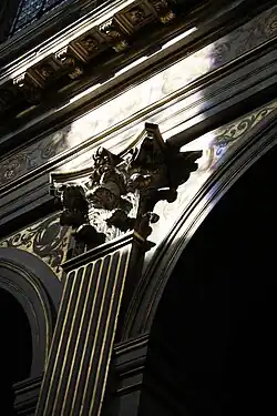 - Die Stuckskulpturen der Madonna mit Kind und der heiligen Genoveva, beide von 1741, sind Werke des Bildhauers François Ladatte.