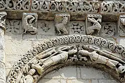 Corme-Royal, Gesims über Hauptportal und Pfeilervorlage