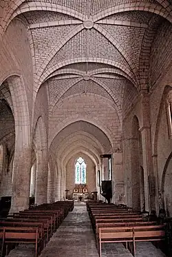 Ein Versatz im Grundriss und ein Wechsel der Gewölbestrukturen und deren Höhen lässt eine Zäsur in den Stilrichtungen und in der zeitlichen Abfolge der Ausführung erkennen. Der östliche Bauabschnitt aus den Jochen 4 bis 7 ist gegen Ende der Romanik einzuordnen. Das Hauptschiff wird überwölbt durch eine angespitzte Tonne, außer den Wänden getragen von profilierten Gurtbögen. Das Seitenschiff wird überdeckt von einem einfachen vierteiligen Kreuzrippengewölbe. Die Trennung zwischen den beiden Schiffen besteht aus einer dicken Scheidewand mit angespitzten profilierten Scheidbögen auf den massiven Rundstützen aufgelagert.