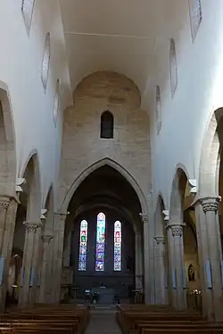 Die Kirche wurde 1238 erstmals erwähnt. Der rechteckig geschlossene Chor ist im Stil der burgundischen Gotik gestaltet. Das Hauptschiff und die Seitenschiffe stammen aus dem Ende des 14. und dem Anfang des 15. Jahrhunderts. Die Seitenkapellen wurden Ende des 15. und im 16. Jahrhundert errichtet. Im 19. Jahrhundert wurde die Kirche um zwei Joche verlängert und die heutige Fassade angefügt.