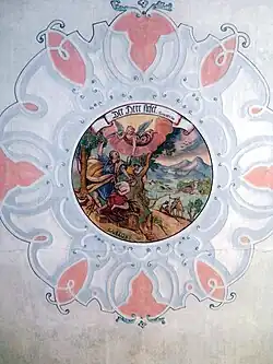 Die Kirche ist ein schlichter Saalbau mit einem zwiebelbekrönten Ostturm, dessen Obergeschoss nicht über den Dachfirst des Langhauses hinausreicht. Das mit Emporen ausgestattete Innere mit zwei übereinanderliegenden Fensterreihen im Langhaus ist im sogenannten Bauernbarock gehalten.[5] Auffallend ist der Kanzelaltar: Über dem Altar mit seinem Kruzifix wölbt sich die Kanzel vor; diese in der Fränkischen Schweiz eher seltene Anordnung erinnert an den Markgrafenstil. Für den Patronatsherrn gab es eine eigene Loge. Die beiden Figuren, die die Kanzel flankieren, links Moses, rechts Aaron, wurden von einem Bamberger Bildhauer zur Zeit der Entstehung der Kirche aus Lindenholz geschnitzt.[5] Auf dem Kanzeldeckel ist ein geschnitzter Pelikan zu sehen, der aus seiner aufgerissenen Brust seine vier Jungen füttert – ein Symbol für Jesus Christus. Rechts und links von ihm sitzt jeweils ein geschnitzter Engel. Als Künstler des Kanzelaltars vermutet man den Bayreuther Hofbildhauer Elias Räntz.[6] Die Grabdenkmäler zu beiden Seiten des Altars erinnern an Angehörige der Freiherren von und zu Egloffstein; auch das Bärenwappen über dem Portal verweist auf dieses Geschlecht, das unter der Kirche seine Begräbnisgruft hatte. Das Haupt-Deckenfresko zeigt die Opferung Isaaks nach 1. Mose 22. Auf dem vorderen Fresko ist die Dreieinigkeit, auf dem hinteren der Gute Hirte dargestellt. Die Fresken in den Ecken zeigen die vier Evangelisten. Nach der Portalinschrift renovierten Wilhelm und Carl von und zu Egloffstein die Kirche 1850 und 1896.