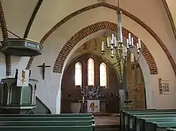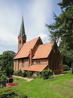 Die einschiffige Kirche wurde im frühen 13. Jahrhundert errichtet und wird bereits im Ratzeburger Zehntregister 1230 aufgeführt. Sie hat einen für die Gegend typischen, eingezogenen Kastenchor[1] mit drei spitzbogigen Fenstern. Schiff und Chor sind gewölbt und haben seitlich paarweise angeordnete Fenster. Später angebaut ist die Erweiterung der Sakristei an der Südseite des Chors. Die Sakristei selbst hat ebenfalls ein Kreuzrippengewölbe der Frühgotik. Die Gruft an der Nordseite des Kirchenschiffs ist ebenfalls eine bauliche Erweiterung aus späterer Zeit. Der sechseckige Kirchturm vor dem westlichen Vorbau des Kirchenschiffs ist hingegen neugotisch und wurde erst 1872 errichtet.