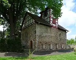 Die 1303 erstmals urkundlich erwähnte mittelalterliche Kapelle aus Bruchsteinen auf rechteckigem Grundriss ist der ehemalige leicht eingezogene Chor einer romanischen, mit einem Satteldach bedeckten Saalkirche. Die Grundmauern des Kirchenschiffs der Fachwerkkirche wurden 1981 ausgegraben. Das kleine Bogenfenster in der Nordwand und das gotische Fenster im Osten sind erhalten. An der Südseite wurde am Anfang des 16. Jahrhunderts ein Portal zu einem Nebenraum eingefügt. In der ersten Hälfte des 19. Jahrhunderts wurde das mit einem Pyramidendach bedeckte Türmchen aus Holzfachwerk gebaut, das den Glockenstuhl beherbergt.