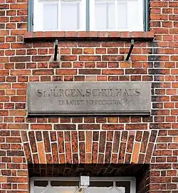 Das 1834 errichtete neue St.-Jürgen-Schulhaus entstand als schlichtes zweistöckiges klassizistisches Backsteingebäude mit Krüppelwalm-Mansarddach. Im Erdgeschoss befand sich die Wohnung des Schulmeisters, in der oberen Etage das rund 30 Quadratmeter große Klassenzimmer sowie ein weiterer Wohnraum. 1846 wurde das mittlerweile als Armenhaus dienende Siechenhaus aufgelöst; die separate Stiftung für die Schule blieb jedoch bestehen. 1866 ging die Führung des Schulbetriebs an die Domgemeinde über; zwei Räume des ehemaligen Siechenhauses wurden als zusätzliche Unterrichtsräume hergerichtet.