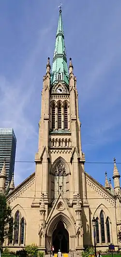 Der dritte Sakralbau ist die heutige im neugotischen Stil erbaute Kirche und bietet für 2000 Personen Sitzplätze. Sie misst bis zu ihrer Spitze 92,9 Meter und ist nach dem St.-Josephs-Oratorium die zweithöchste Kirche Kanadas. Die Gesamtlänge des Langhauses inklusive des Turms beträgt 60,3 Meter, die maximale Breite beläuft sich auf 29,9 Meter. Ihr Architekt war Fredrick Cumberland. Sie wurde am 19. Juni 1853 für den Gottesdienst eröffnet. Die Fertigstellung ihres Turms sowie die Installation der Kirchenglocken zog sich bis 1965 hin, die Kirchturmspitze wurde 1874 fertiggestellt. Der Architekt des Kirchturms war William Storm. Ein Jahr später wurde die Turmuhr installiert. Der Kirchenfriedhof stand ursprünglich östlich des Sakralbaus und wurde in den 1840er Jahren in die Bischofskirche St.-James-the-Less verlagert.