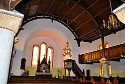 Der 35 Meter hohe Turmaufbau besitzt zwei Glocken, die 1931 von der Firma Schilling aus Apolda bei Weimar gegossen wurden.