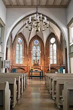 Im Zweiten Weltkrieg, im Januar 1945, zerstörte eine Bombe die Dächer von Kirchenschiff und Chorraum. Da es lange keine Baumaterialien für die Reparatur gab, nahm die Kirche weiteren Schaden (Fäulnis und Schwamm). 1948 waren schließlich alle Holzteile des alten Daches entfernt und ein neues Dach gedeckt. Das hölzerne Tonnengewölbe des Kirchenschiffs wurde nicht rekonstruiert, das gotische Gewölbe erst 1951. Noch bis 1963 mussten immer wieder Teile im Inneren der Kirche erneuert werden, weil sich bis dahin unentdeckte Schäden zeigten. Kanzel, Altar und Lesepult wurden dem Geschmack der 60er Jahre entsprechend erneuert. 1992 wurde die Kirche innen das nächste Mal gründlich renoviert. Die Malerei in den Nischen des Chorraums von 1895 wurde wieder frei gelegt und auch der Fliesenfußboden. Es gab wieder eine neue moderne Ausstattung mit Kanzel, Altar und Lesepult.