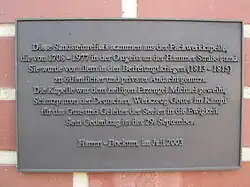 In der alten Kapelle befanden sich vier Tafeln aus Kalksandstein, die verschiedene Motive zeigten. Zwei von ihnen sind Gedenksteine und erinnern an die Gefallenen der Napoleonischen Kriege. Die beiden anderen barocken Tafeln zeigen die Kreuzigung Jesu und die Abnahme vom Kreuz. Die Votivtafeln befanden sich lange Zeit im Magazin des Städtischen Gustav-Lübcke-Museums Hamm. Dann ließ die Kirchengemeinde sie, finanziert durch Spendengelder, in Ascheberg restaurieren. Heute hängen die Tafeln an der östlichen Außenwand des Pfarrheims der St.-Stephanus-Kirche. Zusätzlich befindet sich dort eine Bronze-Tafel, die ihre Geschichte erzählt.