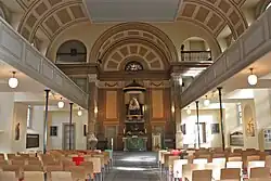 An den Seitenwänden des Innenraums hängen verschiedene Gemälde lokal bekannter Pastoren und Aufstellungen der Wappen von Pastoren und Kirchenjuraten. Von den ursprünglichen Bankreihen sind nach einer Renovierung 1993 heute nur noch zwei kurze Reihen an der westlichen Wand übrig geblieben, die ehemalige Senatsbank (erkennbar am Hamburger Wappen) und die ehemalige Abendmahlsbank.