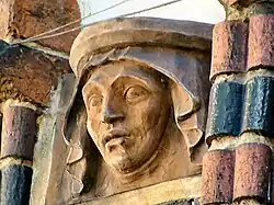 Die Außenverzierung der Kirche besteht aus großen spitzbogigen Fenstern und flachen Lisenen mit aufgelegten Verzierungen aus glasierten Ziegeln und Formstücken, die mit Wimpergen geschmückte Nischen bilden. Unterhalb einer Reihe von Nischen befinden sich Konsolen aus sehr realistisch und individuell gestalteten Terrakottaköpfen. Es sind wohl Porträts angesehener Stettiner Bürger aus dem Mittelalter und Stifter der Kirche.