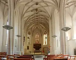 Im Jahr 2014 wurden elf von Günter Grohs gestaltete Fenster im Kirchenschiff eingebaut. Ein bewegtes Ornament durchdringt die farbarmen Verglasungen. Der grafische Bleiriss in den Fenstern tritt in einen Dialog zu den sich überlagernden Kreisen im Betonfußboden.