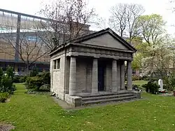 • 1913 entstand das Grabmal Behner für die Familie von Magistratsbaurat Ernst Behner. Das Grabmal ist neoklassizistisch mit dorischen Säulen und einem Wannensarkophag.