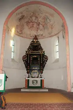 Das ehemalige Minsener Altargemälde, ein segnender Christus, fand einen neuen Platz an der Südwand.[1]