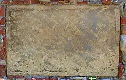 Noch bis in die 1930er Jahre war unterhalb der Fenster der südlichen Außenwand dieser und ein weiterer aus dem 16. Jahrhundert stammender Ziegeltongrabsteine eingearbeitet. Sie waren aus gebranntem Ziegelton hergestellt. Steine dieser Art sind nur sehr wenige erhalten. Um sie vor Witterungseinflüssen zu schützen, wurden sie restauriert und dann in den Innenraum unterhalb des Kirchturms umgesetzt, sind dort jedoch heute nicht mehr vorhanden. Die größere der beiden Platten war 26 cm breit, 25,5 cm hoch und 5 cm stark. Die Inschrift war in deutscher Fraktur gefasst und lautete: Anno 1592 den / 9 May ist Aeva / Heinrich Koval / Elige Hausfrauwe / in Gott entschlaff: und erinnerte so an den Tod von Eva Koval der ehelichen Hausfrau Heinrich Kovals am 9. Mai 1592. Der andere Stein war 20 cm breit und hoch und 6 cm stark. Er trug in fehlerhaftem Latein die Inschrift: ANNO 1575, DIE 12 / JVLIJ MANE HORA 8 IN / CHRO JOACHIMUS FILIO- / LVS JOANIS STARCKIJ HIC / PASTORIS, OBDORMIJT. / 20. SEPTIMAN:PLEVRISI ET / PHTHISI MISERE DECVBES / NATUS. 2. ANN: ET QVADRAT. Die Inschrift bedeutet in etwa Im Jahre 1575 ist am Dienstag, den 12. Juli, frühmorgens 8 Uhr, Joachim, das Söhnchen des hiesigen Pastors Johann Starck, in Christo entschlafen, nachdem es 20 Wochen an Brustfellentzündung und Schwindsucht darniederlag. Sein Alter war 2 1/4 Jahr. Es erscheint möglich, dass die beiden zu den Steinen gehörenden Gräber sich unterhalb des ursprünglichen Standortes der Grabplatten an der Südseite der Kirche befanden.[7] Die Steine wurden wohl bei der Zerstörung der Kirche im Jahr 1945 vernichtet. Im Jahr 2021 konnte jedoch ein erhaltenes Bruchstück des Steins von 1592 aufgefunden werden.