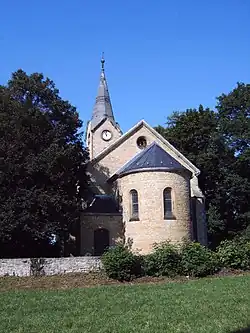 Das Kirchengebäude wurde 1887 im Stil der Neoromanik errichtet. Die einschiffige Kirche mit einer halbrunden, an der Ostseite befindlichen Apsis wurde mit behauenen Bruchsteinen gebaut.