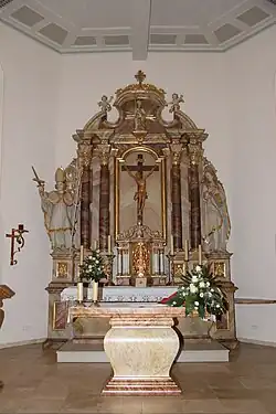 Kirchenbücher berichten seit 1665 über ein Kirchengebäude im Ort. Das jetzige Gotteshaus wurde 1732 bei seiner Errichtung urkundlich ersterwähnt. Die Weihe nahm im Oktober der Weihbischof Christoph Ignatius von Gudenus aus Erfurt vor. Das Portal baute man 1811 an.