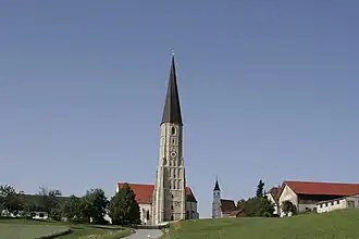 Die Kirche wurde um 1237 vielleicht auf dem Platz eines Vorgängerbaus errichtet. Im 15. Jahrhundert erfolgte ein gotischer Neubau. Nach 1730 wurde die Kirche barock umgebaut. Die Kirche war ein regelrechtes Wallfahrtszentrum zu mehreren Heiligen, die alle bei Unfruchtbarkeit und Kinderwunsch helfen sollten. So wurde der ursprüngliche Kirchenpatron St. Ägidius, die Gottesmutter und die drei heiligen Jungfrauen Einbeth, Wilbeth und Warbeth (Gefährtinnen der heiligen Ursula) um Kindersegen angerufen. Der heilige Ägidius war ein Einsiedler und Abt in Südfrankreich um 700. Er wird in der Kunst mit einer Hirschkuh dargestellt und gilt unter anderem als Patron der stillenden Mütter, weil er sich von der Milch der Hirschkuh ernährt haben soll. Die legendären Jungfrauen Einbeth, Wilbeth und Warbeth sind Nebenpatrone. Die Verehrung dieser drei Jungfrauen ist unter anderem noch in Schlehdorf am Kochelsee und in Worms bekannt. Max Heuwieser will in ihnen einen christlichen Ersatz für die heidnischen Nornen sehen, die wie die drei Jungfrauen die Geburt des Menschen beschützen.