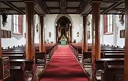 Durchschreitet man die Tür, so befindet man sich zunächst unter der Orgelempore. Der Blick auf die beeindruckende Kassettendecke im Renaissancestil wird erst nach wenigen Schritten in Richtung Kirchenmitte freigegeben. Die Decke entstand bereits in den Jahren 1616 und 1617, als die Kirche errichtet wurde.