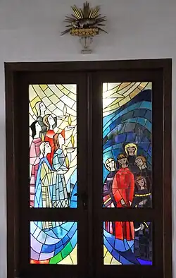 Bleifenster (Detail) in der Tür zwischen Vor- und Kirchenraum