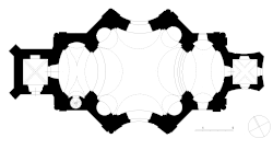 Die Kirche nimmt im Werk Dientzenhofers eine entwicklungsgeschichtliche Sonderstellung ein. Wie in der anschließend von ihm errichteten Kirche St. Johannes von Nepomuk am Felsen in der Prager Neustadt wird das eigentliche Kirchenschiff im Grundriss durch konkav gebogene seitliche Umfassungsmauern bestimmt, mit denen in der Längsachse die in den Raum eingreifenden Ovalräume von Chor und Orgelempore korrespondieren. Die durch Nischen gehöhlten, sich in den Raum vorwölbenden vier Raumkanten sind mit einer dorischen Pilastergliederung versehen. Dem Turmbau sind an seinen Kanten Strebepfeiler angefügt, die im Freigeschoss volutenartig ausgeformt sind. Den Turmabschluss bildet eine geschweifte Haube mit Laternenaufsatz.