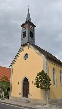 Im Jahr 1862 nahm der Neubau konkrete Formen an. Am 8. Mai 1862 wurde der Grundstein für die neue Kirche gelegt, als Baumeister hatte man den Würzburger Joseph Mack gewinnen können. Bereits ein Jahr später, am 25. Mai 1863, wurde die Filialkirche vom Kirchschönbacher Pfarrer Joseph Kuhn benediziert.[1] Renovierungen wurden 1977 und 1986 vorgenommen. Das Bayerische Landesamt für Denkmalpflege ordnet die Kirche als Baudenkmal ein.