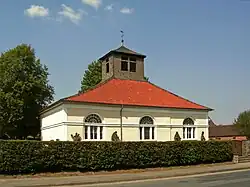 Die Saalkirche wurde 1817 (Inschrift Wetterfahne) zusammen mit Schulhaus und Pfarrhaus nach einem Entwurf von Chausseebau-Inspector Franz Wilhelm Joachim Frische im Auftrag der provisorischen Stiftsgüter-Verwaltungs-Kommission in Hildesheim errichtet.[1] Die klassizistische Kirche auf rechteckigem Grundriss mit verputzten Fassaden ist mit einem Zeltdach bedeckt, auf dessen Spitze sich ein rechteckiger, schiefergedeckter Dachreiter erhebt, dessen Zeltdach von einer Turmkugel mit Wetterfahne gekrönt ist.
