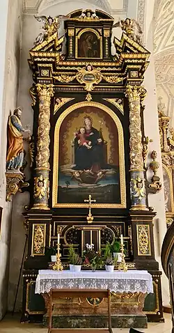 Die Kanzel aus dem späten 17. Jahrhundert wurde 1824 und 1906 eingreifend verändert. Am Pfeiler gegenüber steht ein Kruzifix aus der zweiten Hälfte des 17. Jahrhunderts mit einer Darstellung der Mater dolorosa aus dem ersten Viertel des 18. Jahrhunderts.