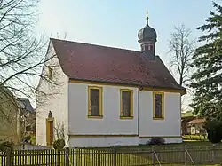 Die spätbarocke Saalkirche mit einem Langhaus und einem eingezogenen, dreiseitig geschlossenen Chor wurde 1744 gebaut. Aus dem Satteldach, das das Langhaus und den Chor bedeckt, erhebt sich ein schiefergedeckter, achteckiger Dachreiter, der mit einer Zwiebelhaube bedeckt ist. Über dem Portal befindet sich ein Relief mit der Darstellung der Vierzehn Nothelfer.