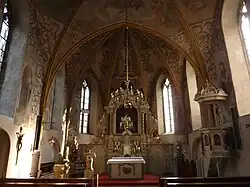 Eine Besonderheit sind die Wand- und Gewölbemalereien in der Kirche. Etwa um 1510/20 hat ein unbekannter Maler die damals neue Kirche ausgemalt. Im Gewölbe ist das Jüngste Gericht mit Christus als Weltenrichter in der Mitte dargestellt, zu seiner linken die Höllendarstellung, zu seiner rechten die Vorstellung des Himmels. Die Malereien im Altarraum zeigen die Apostel.