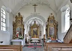 - Bilder der beiden Seitenaltäre zeigen die Mutter Anna (Künstler: Johan Jakob Haas, 1690)