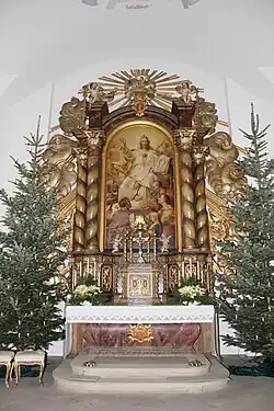 Ältestes Stück ist ein gotischer Taufstein, der noch aus der 1792 abgebrochenen Kirche stammt.